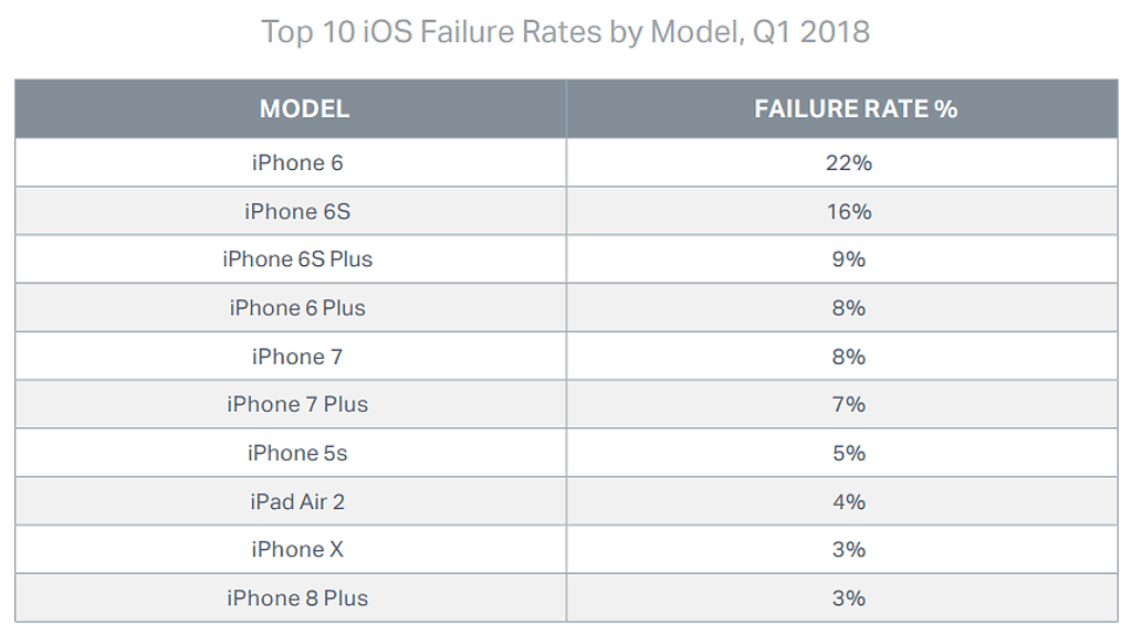iPhone 6 on ollut ongelmallisin iPhone-malli. Tutkimus kertoo, että 22 prosentissa iPhone 6 -laitteita oli ongelmia. Android-puhelinten puolella kärkipaikkaa pitää Samsungin Galaxy S7 -puhelin.