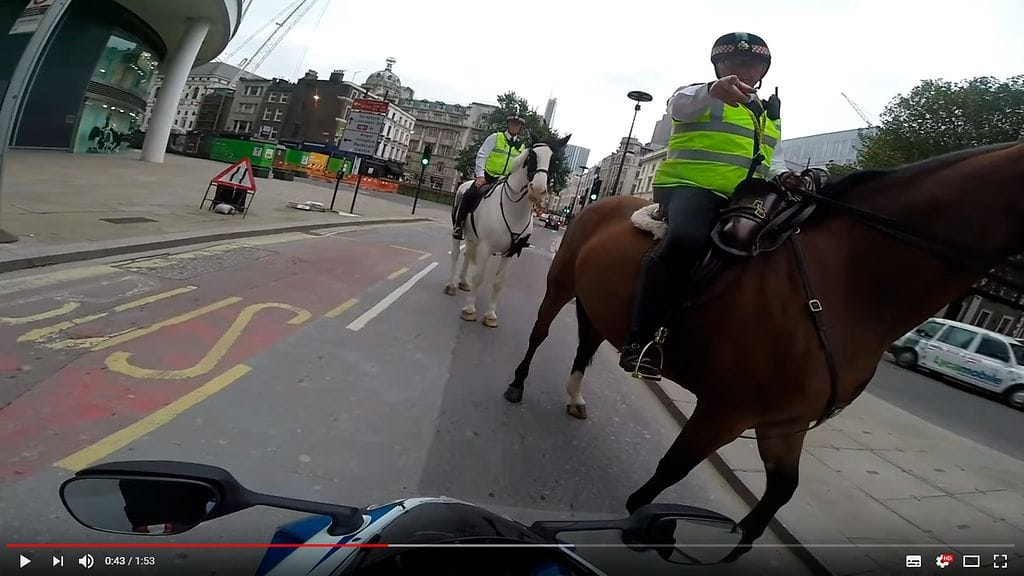 Brittimotoristi päästeli menemään Lontoon keskustassa vähän turhan vauhdikkaasti. Kiihdyttely kiinnitti myös ratsupoliisin huomion, mutta syystä tai toisesta pelkkä nuhtelu katsottiin riittäväksi rangaistukseksi.