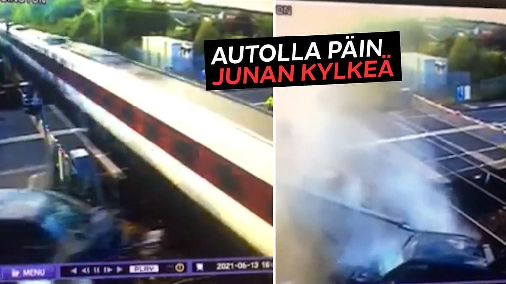 Rautatien valvontakameralle tallentui hirvittävä tilanne tasoristeyksessä, kun rattijuoppo ajoi kovalla vauhdilla suoraan päin ohi kiitäneen junan kylkeä.