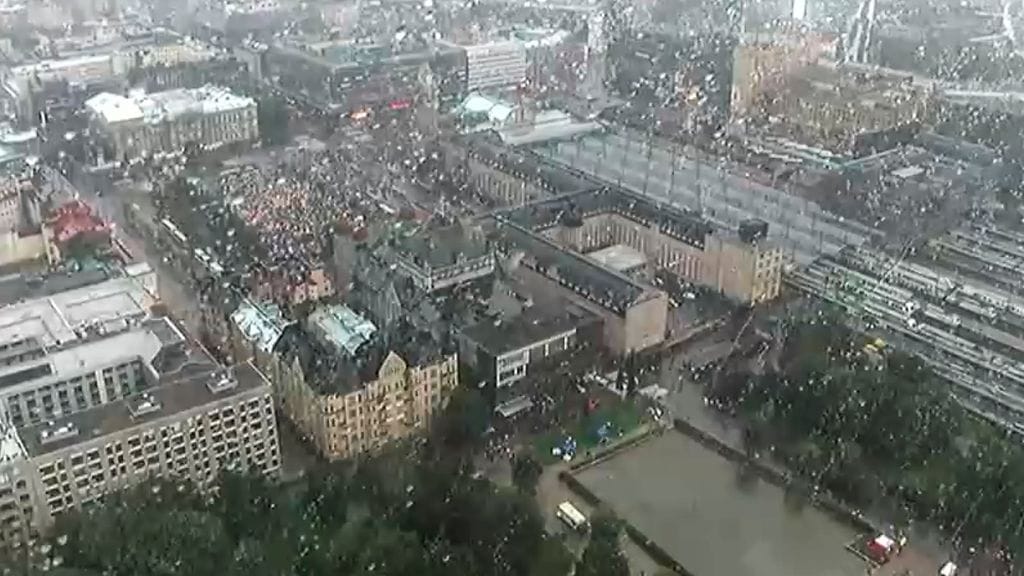 Mielenosoitus Helsingin rautatietorilla on alkanut. Paikalle on kokoontunut jo tuhansia ihmisiä.