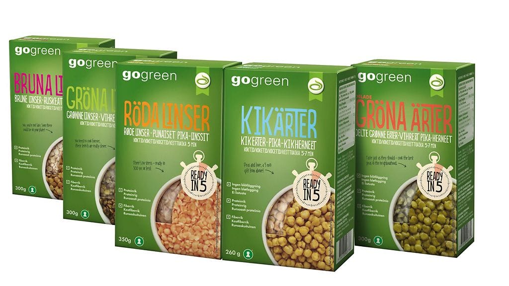 Haluatko välillä, että ikuisuuksia kestävä liotuksen ja keittämisen aikakausi loppuu? GoGreen ”Ready in 5” on mullistava kuivien herneiden ja linssien uusi tuoteperhe, jonka ansiosta liotus jää pois ja keittoaikakin lyhenee laatuun tai makuun vaikuttamatta.
