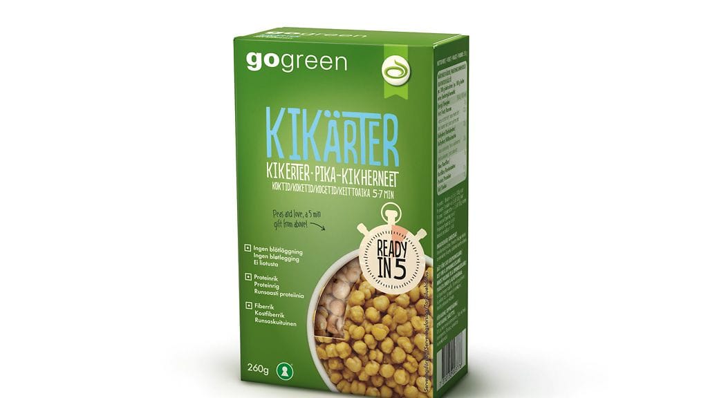 GoGreenin Ready-in-5 Pika-kikherneillä voit nauttia nopeasti valmistettavasta maukkaasta ja terveellisestä kotiruoasta. Liotus ja pitkään keittäminen on ilmiömäisen Ready-in-5 tuoteperheen myötä mennyttä aikaa – herneet valmistuvat viidessä minuutissa.