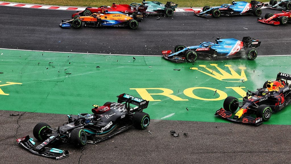 Bottas törmäsi McLarenin Lando Norrisiin Unkarin GP:n ensimmäisessä mutkassa aiheuttaen joukkokolarin. Bottaksen ja Norrisin lisäksi Red Bullin Sergio Perez joutui keskeyttämään heti ensimmäisellä kierroksella. Kolari aiheutti vaurioita myös toisen Red Bull -kuskin Max Verstappenin autoon. Verstappen ei pystynyt tekemään kunnon nousua rikkinäisellä autolla, jääden jämäsijoille.