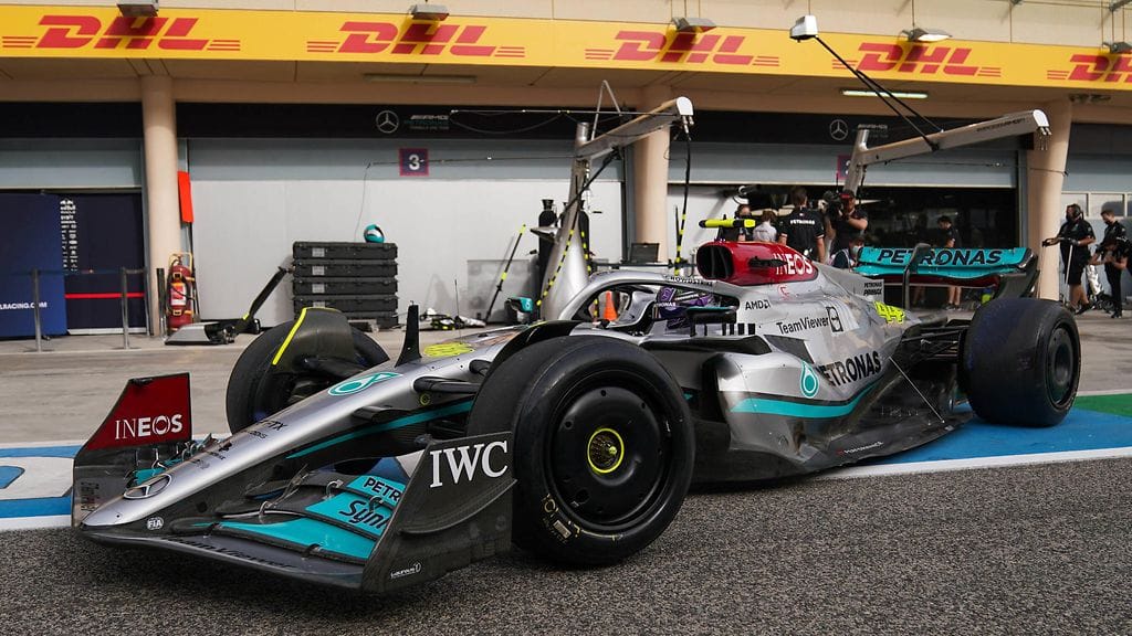 Kädenvääntö liittyy Mercedeksen W13-autoon. Mercedes esitteli torstaina Bahrainissa päivityspaketin, missä huomio kiinnittyi muun muassa erittäin innovatiivisiin sivuponttooni- ja peilipidikeratkaisuihin.