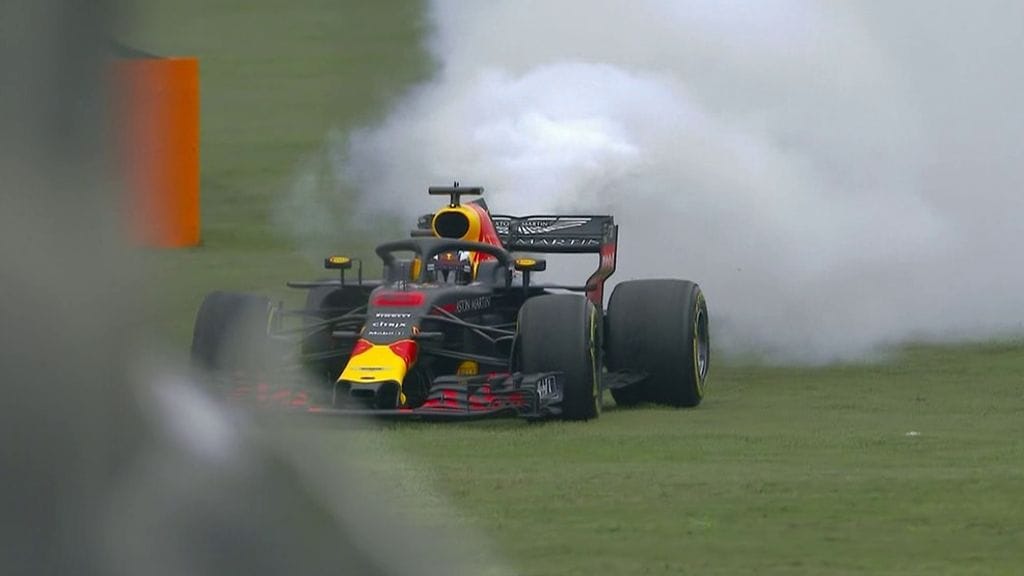 Ricciardon turbo vinkaisi kovassa vauhdissa ja australialainen joutui kurvaamaan savuavan autonsa nurmikolle. Red Bullilla tulee kiire vaihtaa vaurioituneet osat aika-ajoihin, jotka käynnistyvät jo kello 8 Suomen aikaa.