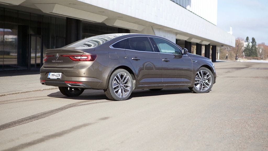 Talismanin muotoilu kääntää päitä. Se näyttää itsevarmalta joka suunnasta katsottuna. Jämäkkyyttä korostavat korkea keula ja siitä korkeana jatkuva kylkilinja. Keulan isoa Renault-merkkiä korostaa entisestään musta kehys. Makuasioista ei toki voi kiistellä, mutta allekirjoittaneen silmään uusi Talisman näyttää edustavalta ja positiivisella tavalla persoonalliselta.