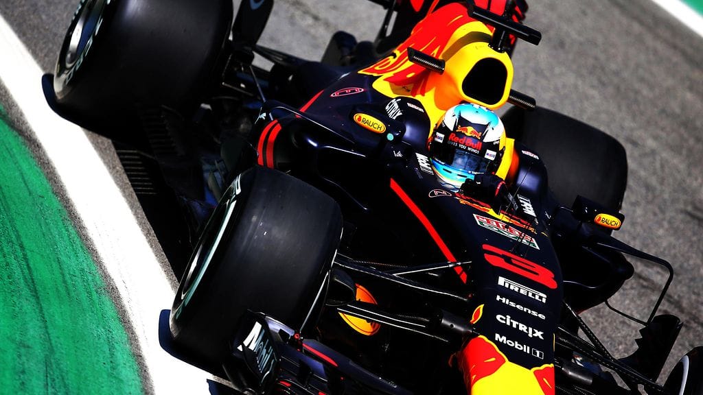 Red Bullin Daniel Ricciardo iski Brasilian GP:n toisissa harjoituksissa perjantaina Mercedesten jälkeen lupaavasti kolmanneksi. Aussikuskin kisaviikonloppua mutkistaa 10 lähtöruudun rangaistus, mutta hän uskoo pystyvänsä aika-ajon nopeimpaan aikaan yhdellä ehdolla: jos taivaalta tulee apuja.