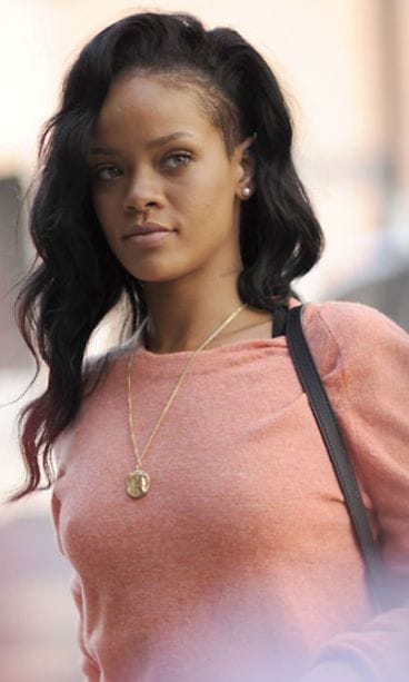 Laulaja Rihanna, 24, näyttäytyi New Yorkissa paljastaen kaulassaan komeilevan tatuoinnin.