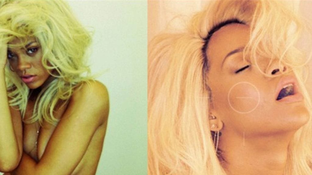 Rihanna julkaisi itsestään kuvia, joissa hän poseeraa vaaleaverikkönä ilman rihman kiertämää. Sulonsa hän kuitenkin suojaa käsillään, mutta naisen poseerausilmeet kertovat omaa tarinaansa. Rivot kuvat lähentelevät jo aikuisviihdeosastoa.
