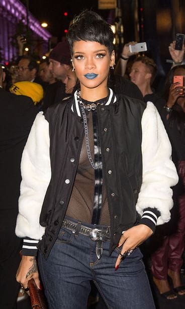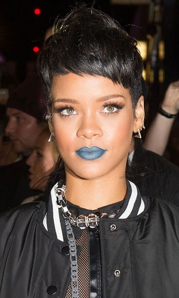 Räväkkänä tyylikamelionttina tunnettu Rihanna yllätti kuitenkin kuvaajat, kun hän oli sipaissut huulilleen ohutta, sinistä sävyä rajauksineen kaikkineen.