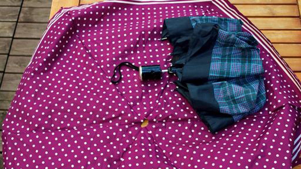 Syksy vie mukanaan lukemattomia sateenvarjoja. Osa unohtuu matkalle, osan myrskytuuli repii vintturaan. Rikkinäinen sateenvarjo on komerossa täysi turhake. Siksi sen voikin hyvällä omatunnolla purkaa ja kankaan hyödyntää ompelemalla siitä pienen kassin.