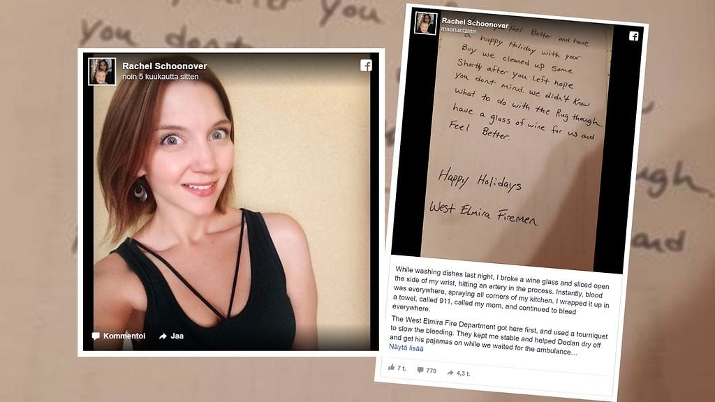 Sosiaalisessa mediassa on muodostunut viraaliksi erään äidin kirjoitus, jossa hän kertoo palomiesten suuresta avusta tapaturman hetkellä.