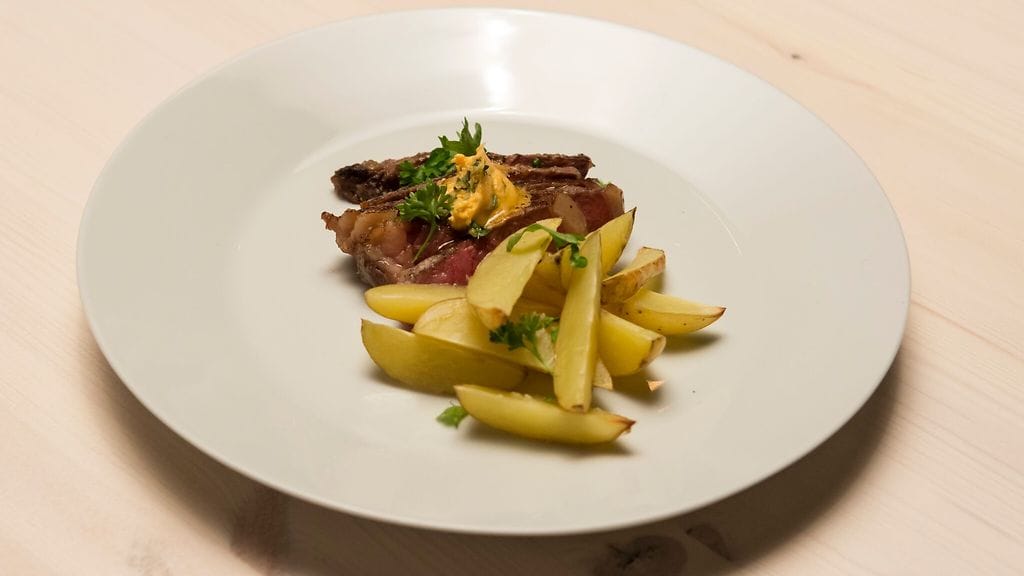 Riku Riihilahden raaka-aineista valmistui maustettu siika, pilahviriisi, naudan entrecote ja lohkoperunat sekä srirachavoi.