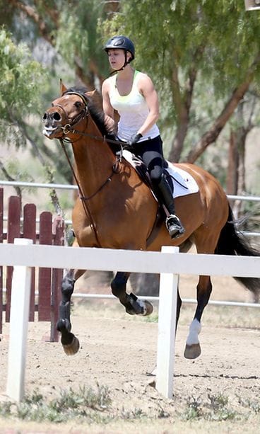 Näyttelijä Kaley Cuoco, 27, pääsi näyttämään esimerkkiä vauhdin huumasta hevosensa selässä, Kaliforniassa. Hevosmiestaitoja Rillit huurussa -sarjan tähti onkin kerryttänyt vuosikaupalla.