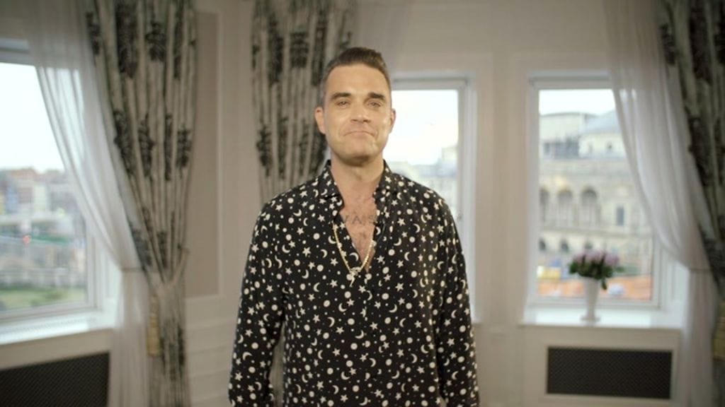 Posse-lähetykseen lauantaina saapuva Robbie Williams lähetti terveiset suomalaisille faneilleen.
