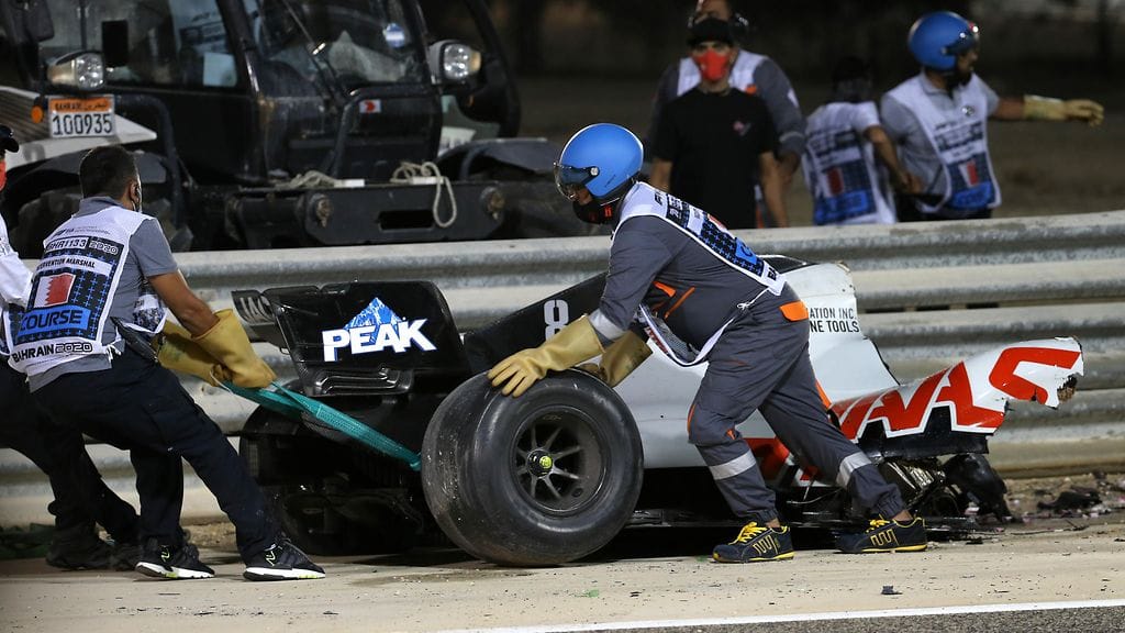 Grosjeanin auto paiskautui teräskaiteiden läpi yli 220 kilometrin tuntivauhdissa. Auto muutti jyrkästi suuntaansa kontaktista AlphaTaurin Daniil Kvjatin kanssa, joten ulosajokohta oli varsin epätavallinen.