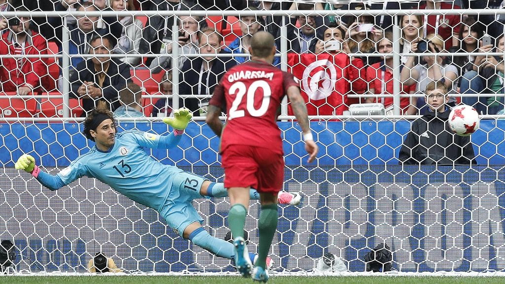 Portugalin Luis Neto viimeisteli epäonnekseen Moskovassa pelatun ottelun avausmaalin omaan verkkoon 55. peliminuutilla. Maalivahti Guillermo Ochoa oli nousta Meksikon sankariksi, kun hän torjui vartin pelin jälkeen Andre Silvan rangaistuspotkun. Videotuomarit pääsivät jälleen tositoimiin, sillä erotuomari Fahad al-Mirdasi vihelsi rangaistuspotkun vasta videotarkastuksen jälkeen.