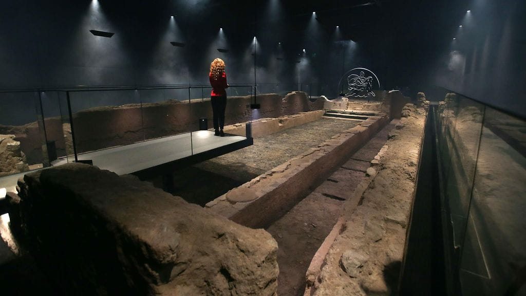 Mithra-jumalalle pyhitetyn temppelin rauniot siirrettiin aikanaan sadan metrin päähän alkuperäisestä paikastaan rakennustöiden alta. Nyt ne on palautettu takaisin oikealle paikalleen restauroituina.