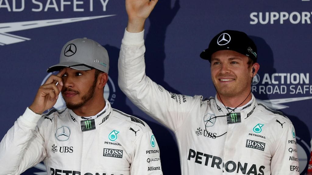Mercedes-kuskien Nico Rosbergin ja Lewis Hamiltonin välillä jäi vain 0,013 sekuntia.
