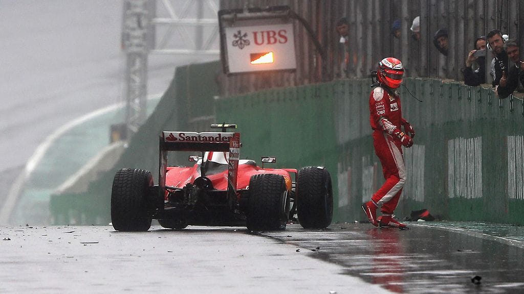 Kimi Räikkönen sai huokaista helpotuksesta selvittyään ehjin nahoin uusintastartin jälkeisestä ulosajostaan. Itse seinään osuminen ei ollut vaarallinen, mutta suomalaisen Ferrari jäi pääsuoralla ja sankassa vesisumussa takaa tulevan letkan väisteltäväksi. Lähimpänä Räikköstä kävi Manorin Esteban Ocon, joka kuitenkin ehti reagoida ajoissa.