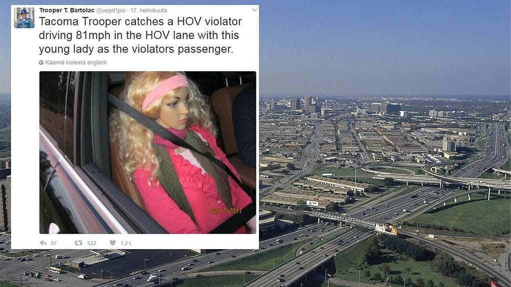 Yhdysvalloissa tarkkasilmäinen poliisi huomasi kuskin rikkovan liikennesääntöjä ajamalla niin sanottua korkean käyttöasteen kaistaa.