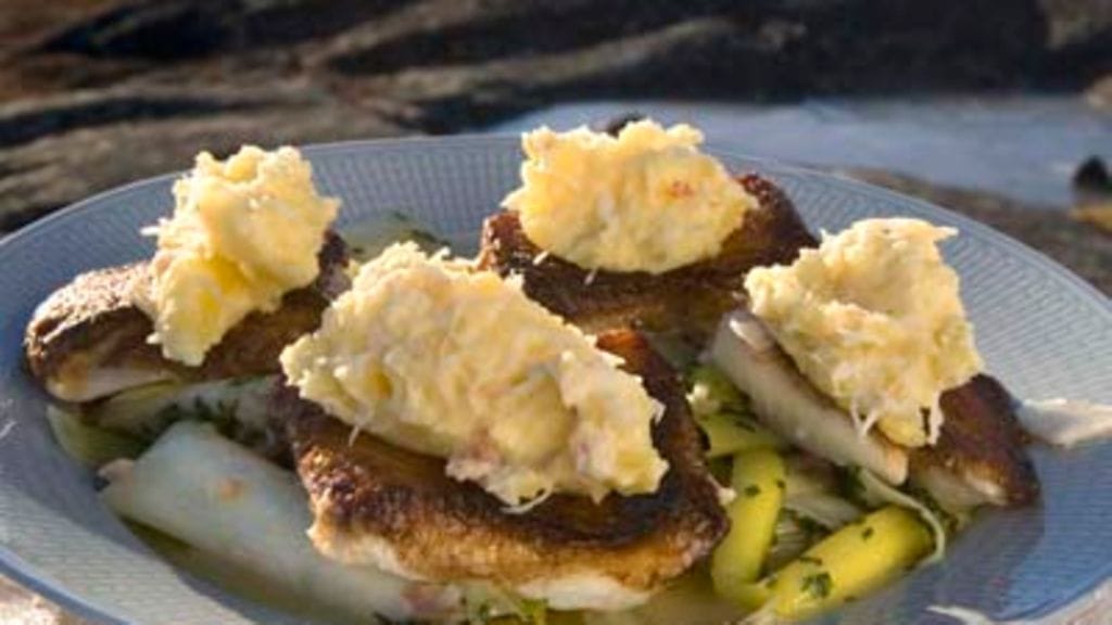 Komea ruijanpallas on yksi suurimmista kampelakaloista. Ruijanpallaksen lisukkeeksi Claus suosittelee keitettyä purjosipulia.