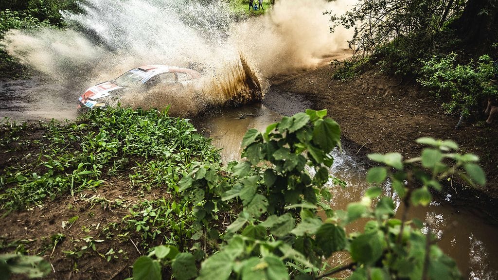 Oliver Solbergin auto hyytyi keskelle tietä Kenian rallin sunnuntain ensimmäisellä erikoiskokeella.