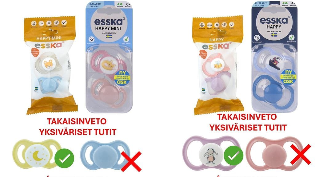 Ruotsalainen Esska of Sweden AB on vetänyt myynnistä tutteja Suomessa.