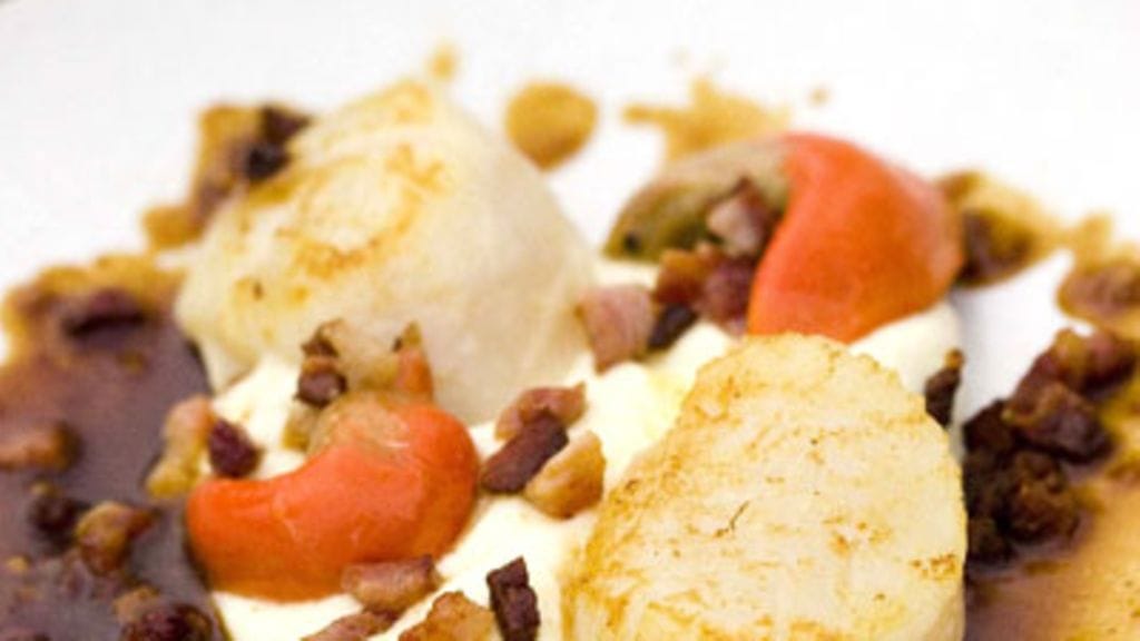 Ruskista pekoni paistinpannussa kohtalaisella tai kovalla lämmöllä. Kun pekoni on kullanväristä ja sihisevän kuumaa, asettele kampasimpukat pannulle.