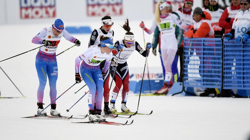 Suomi oli ensimmäisessä välierässään toinen, mikä tarkoitti samalla suoraa finaalipaikkaa. Norjan Heidi Weng ja Maiken Caspersen Falla nousivat lopussa ykköseksi Suomen ohi. Eroa tuli 3,1 sekuntia. Erän kaksi parasta eteni suoraan iltapäivän finaaliin.