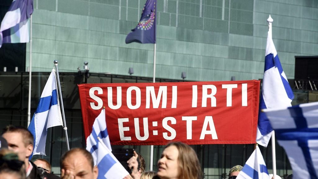 Noin 350 ihmistä osallistui tiistaina mielenosoitukseen, jossa vaadittiin Suomen eroa Euroopan unionista ja hallituksen eroa, kertoo Helsingin poliisi.