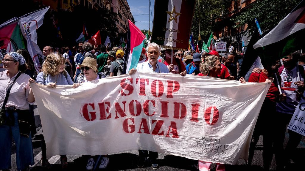 Italian pääkaupungissa Roomassa sadattuhannet mielenosoittajat vaativat lauantaina loppua Israelin veriselle hyökkäykselle Gazassa.