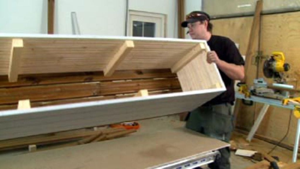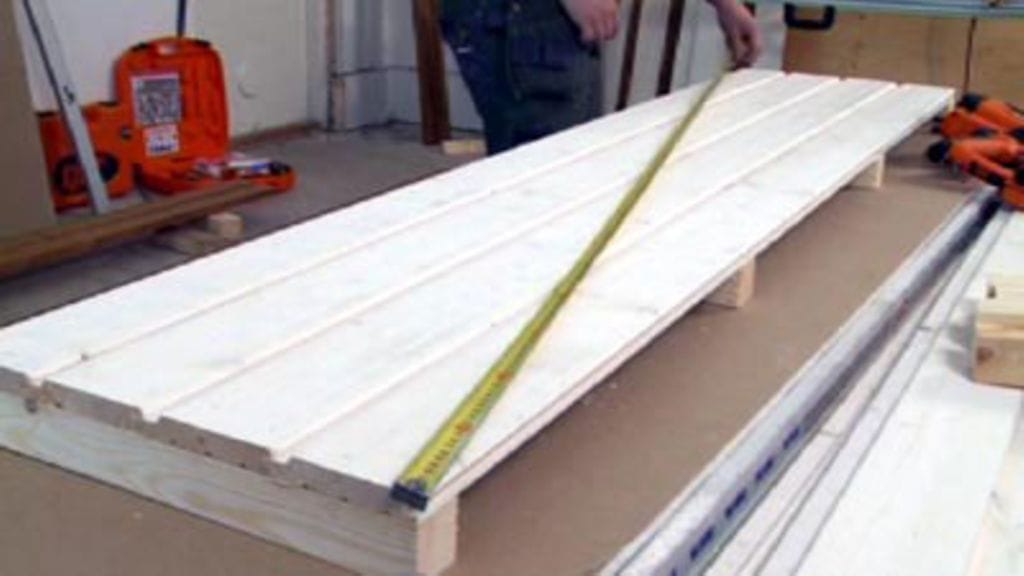 Runkopuiksi käytettiin höylättyjä 2 x 2 tuuman puita. Paneelilaudat kiinnitettiin niihin alustavasti viimeistelynaulaimella – heftattiin, kuten tavataan sanoa – jotta niiden asentoa voitiin vielä tarvittaessa säätää. Syntyneen paneelilevyn suorakulmaisuus tarkastettiin ristimittauksella ja kun se oli todettu oikeaksi, laudat ruuvattiin lopullisesti kiinni.