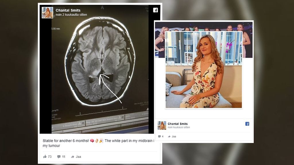 Chantal Smits, 22, työskentelee sairaanhoitajana päivittäin aivokasvainpotilaiden parissa St Georgesin sairaalassa, mutta vasta nähtyään työpaikallaan kasvaimista varoittavan julisteen Chantal ymmärsi, että hänelläkin voisi olla kasvain.