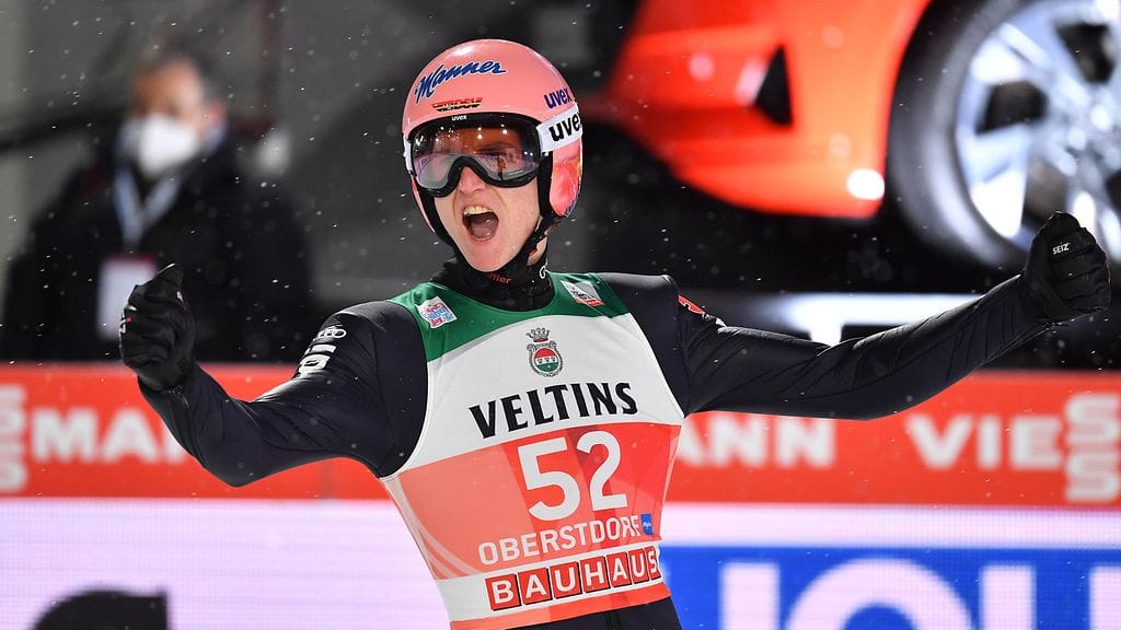 Lentomäen maailmanmestaruuden joulukuussa voittanut Karl Geiger on huippuvireessä myös mäkiviikolla. Saksalainen Geiger avasi tiistaina mäkiviikon Oberstdorfin kilpailun voitolla.