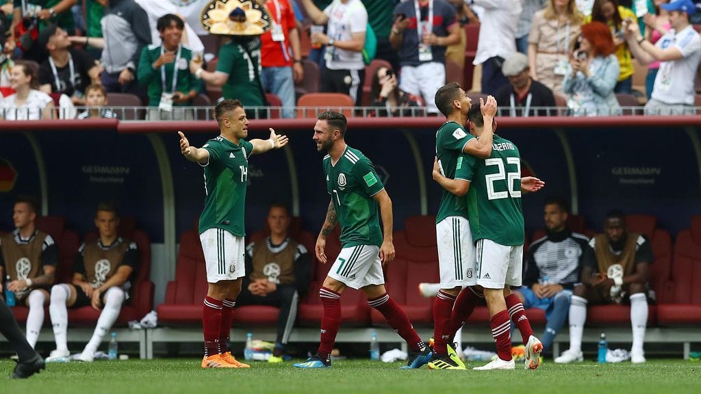 Meksiko järjesteli MM-kisojen alkuvaiheen suurimman yllätyksen, kun se voitti hallitsevan maailmanmestarin Saksan sunnuntain ottelussa lukemin 1-0.