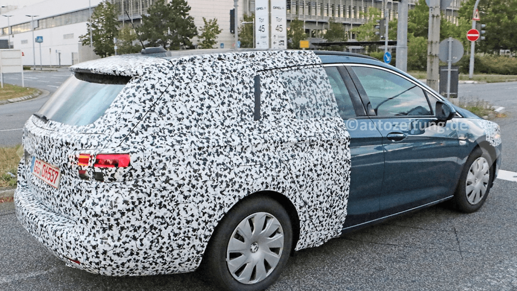 Uusi Opel Astra Sports Tourer on myös aikaisempaa tilavampi. Kuvaajan bongaama testiauto oli naamioitu B-pilarista eteenpäin, joten perän muodot eivät vielä kovin tarkasti ole nähtävissä. Kattolinja jatkuu kuitenkin taakse asti varsin korkealla ja parhaimmillaan tavaratilaa löytyy 1 500 litraa.