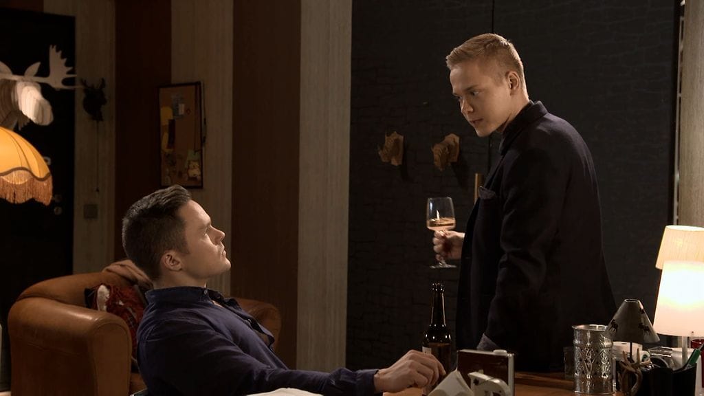 Lari hyväksyy Kallen selityksen siihen, ettei tämä vastannut aiemmin hänen puheluunsa ja ilahtuu, kun Kalle suostuu tulemaan viini-iltaan.