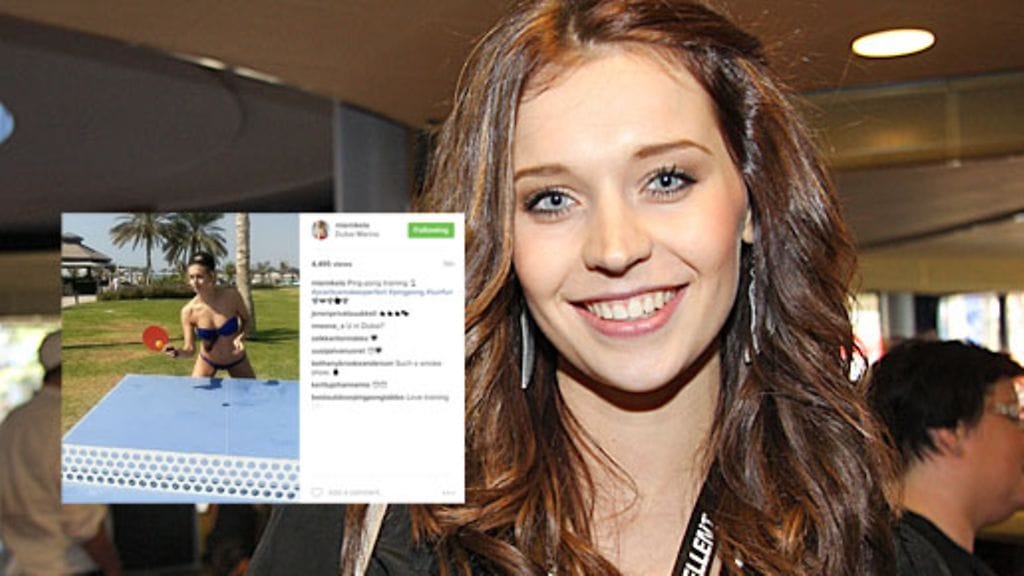 Ehrnrooth on töidensä ohella ehtinyt nauttimaan Arabiemiraattien lämmöstä. Nainen julkaisi Instagram-tilillään kuvan, jossa hän pelaa pöytätennistä. Video on editoitu pyörittämään liikettä kuvassa edestakaisin.