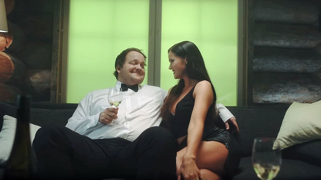 Kaunotar viettelee videolla Saturday Night Livestä tutun koomikko Kalle Lambergin esittämän hahmon.