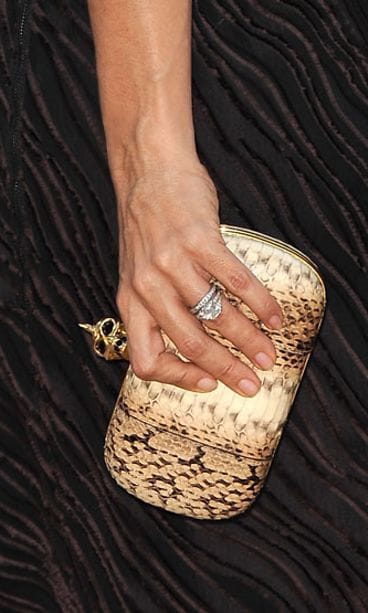 Tähti oli yhdistänyt asuun hillityn nudemeikin ja jättänyt hiuksensa auki. Karamellisävyjä korostivat kullanvärinen iltalaukku ja mustat, huikean korkeat peeptoe-korkokengät. Seuranaan Hayekilla oli tyttärensä Valentina, joka näytti suloiselta punaisessa mekossaan.