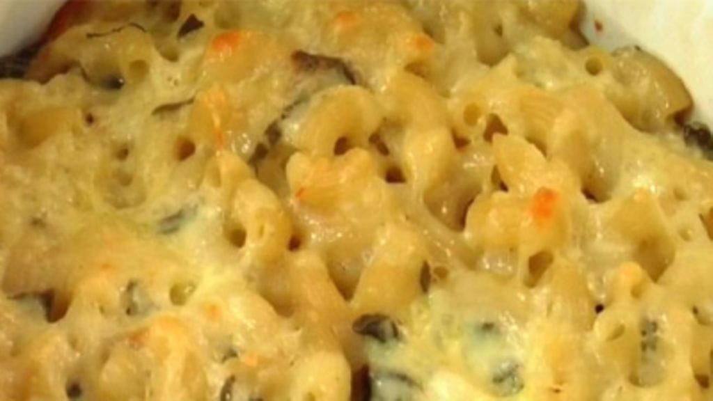 Keitä makaroneja kiehuvassa, suolatussa vedessä kolme minuuttia ja kaada heti siivilään ja anna jäähtyä. Sekoita muna ja maito kulhoon ja lisää joukkoon silputtu salvia. Mausta munamaito pippurilla, suolalla ja muskotilla. Voitele uunivuoka oliiviöljyllä ja kumoa makaronit siihen. Sekoita makaronien joukkoon 1 dl juustoraastetta. Kaada joukkoon munamaito ja sekoita kevyesti, niin että munamaitoa on kaikkialla. Paista uunissa 200-asteessa 30 minuuttia ja ota uunista ulos, ripottele päälle juustoraaste ja paista uunissa vielä 200-asteessa grillivastukset päällä niin kauan, että juusto sulaa ja ruskistuu.