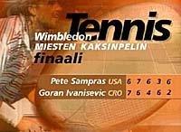 Yhdysvaltain Pete Sampras otti sunnuntaina viidennen mestaruutensa Wimbledonin tennisturnauksessa. Loppuottelussa turnauksen ja maailmanlistan kärkinimi kukisti Kroatian Goran Ivanisevicin eräluvuin 6-7 (2-7), 7-6 (11-9), 6-4, 3-6, 6-2. Sampras sai uurastaa uransa 11. Grand Slam -mestaruuden eteen lähes kolme tuntia.