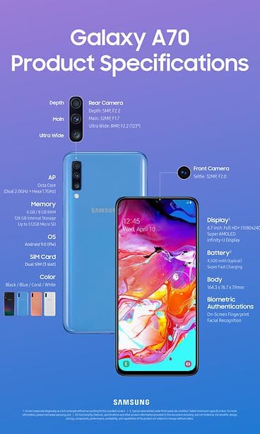 Uudet Suomessa myyntiin tulevat A-sarjalaiset ovat Galaxy A80:n lisäksi Galaxy A70, Galaxy A40 ja Galaxy A20e. Viisikon täydentää jo aiemmin myyntiin tullut Galaxy A50.