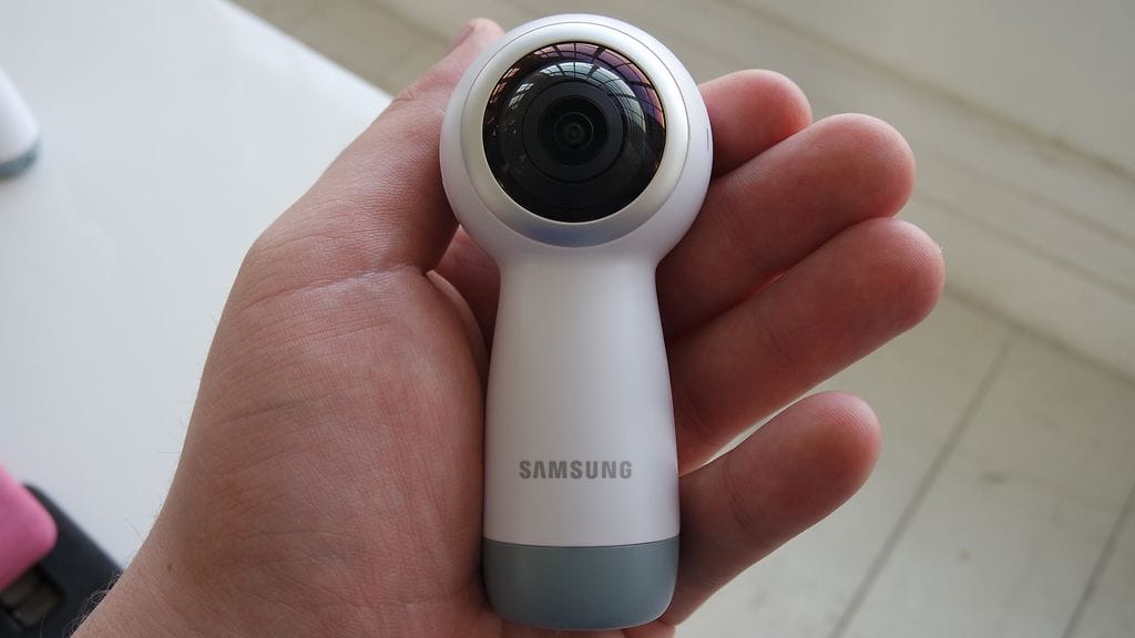 Samsung julkisti uuden toisen sukupolven Gear 360:n yhdessä Galaxy S8 -puhelintensa kanssa Ensimmäisessä sukupolvessa nähty pieni tripod-jalusta on korvattu uudessa pidemmällä kädensijalla ja näin kamera on tehty helpommaksi pitää kädessä.
