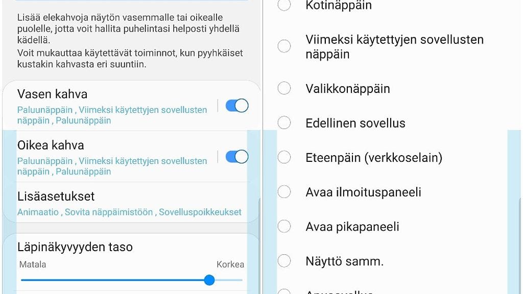 Nimensä mukaisesti sovelluksella lisätyt eletoiminnot voivat helpottaa puhelimen käyttöä yhdellä kädellä.