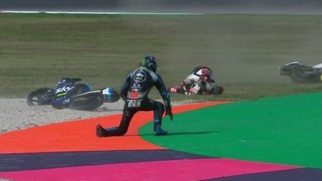 Misanon rata osoitti haasteellisuutensa, kun peräti 14 kuljettajaa keskeytti San Marinon Moto3-kilpailun. Voitton ajoi Tatsuki Suzuki.
