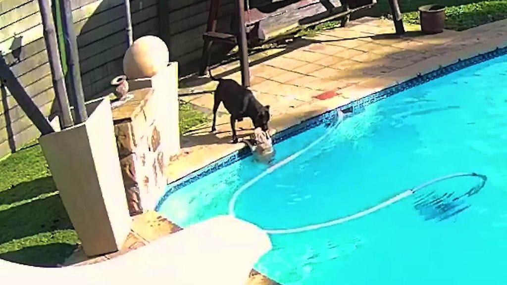 Uima-altaaseen pudonnut koira pääsi pinteestä, kun sen uljas kaveri riensi hätiin Etelä-Afrikassa viime viikolla.