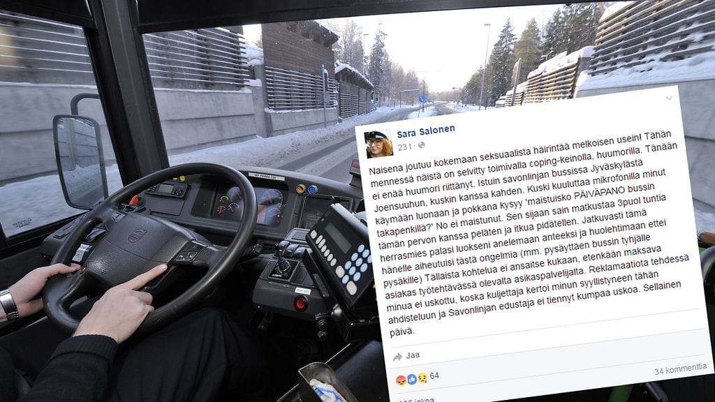 Joensuulainen opiskelija Sara Salonen kertoi Facebookissa pari viikkoa sitten erittäin epämiellyttävästä kokemuksestaan Savonlinjan pitkän matkan bussissa.