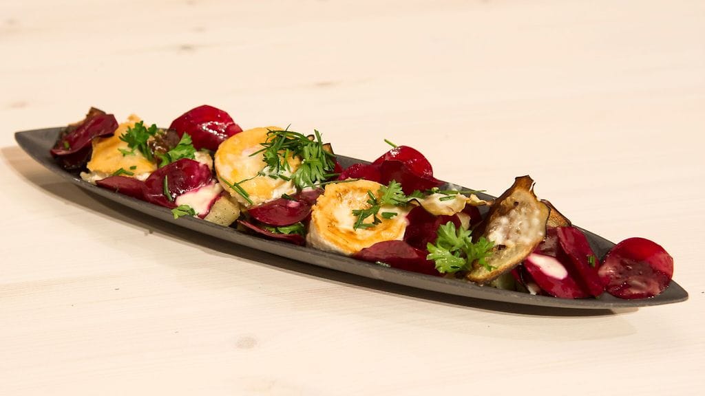Sara Parikan ostoskassin sisällöstä valmistui juustoa ja munakoisoa kahdella tapaa, liekitettyjä luumuja, minttusuklaakastiketta ja lakkamoussea.